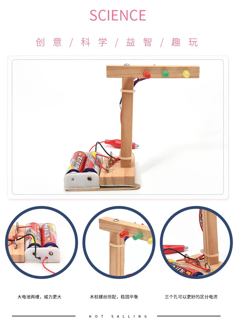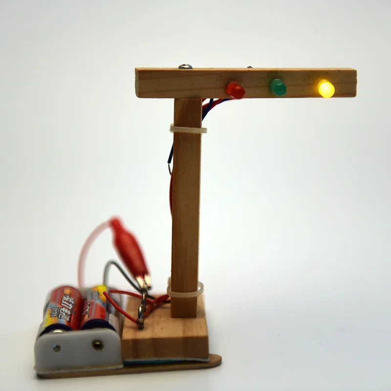 Children DIY Mini Wooden Traffic Light Primary School Student Science Experiment Gizmo Fun Learning Education Toys for Children